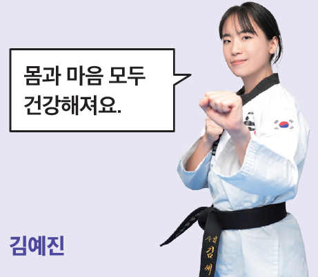 원래부터 태권도에 관심이 많았는데 쉽게 시도하지 못했었어요. 저와 같은 분들이 많을 거라고 생각합니다. 모두 태권도에 도전해보셨으면 좋겠어요. 실제로 해보면 더욱 활력 넘치고 매력적인 운동이랍니다.
