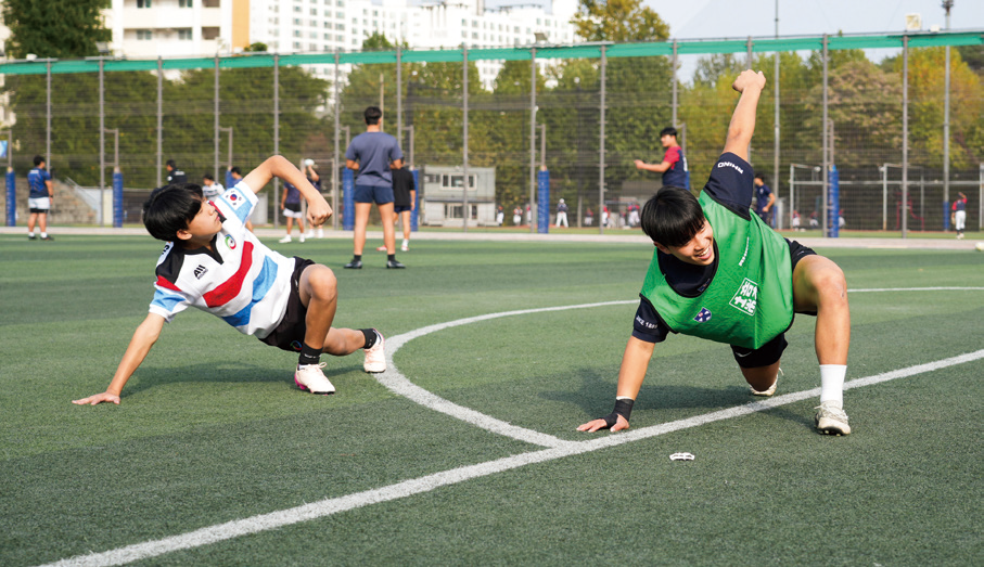 “제가 배재중학교를 다닐 때도 같이 운동장을 쓸 때면 함께 훈련을 하기도 하고 선배님들이 기술을 알려주시기도 했어요.” 최예준 선수의 말처럼 배재고 럭비부는 후배들을 이끄는 일에 앞장선다. 매년 있는 양정고등학교와의 정기전을 앞두고 졸업생들이 학교를 찾아 함께 훈련하기도 한다고. 배재고 럭비부는 선배들의 내리사랑을 전파하며 럭비에 대한 열정과 애정을 공고히 다지고 있었다.