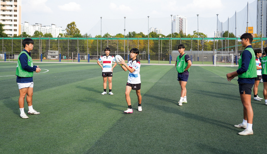 만들어야 해.” 서울시 럭비 클럽의 학생이 돌파하는 모습을 지켜보던 배재고 럭비부 선수들은 진지한 얼굴로 조언을 해주었다. 서울시 럭비 클럽의 학생들은 선배의