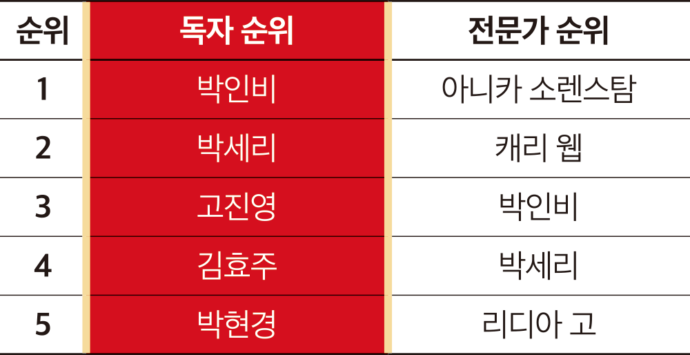 메이저 우승 숫자 등을 기반으로 여자골프 최강 5인을 꼽는다.